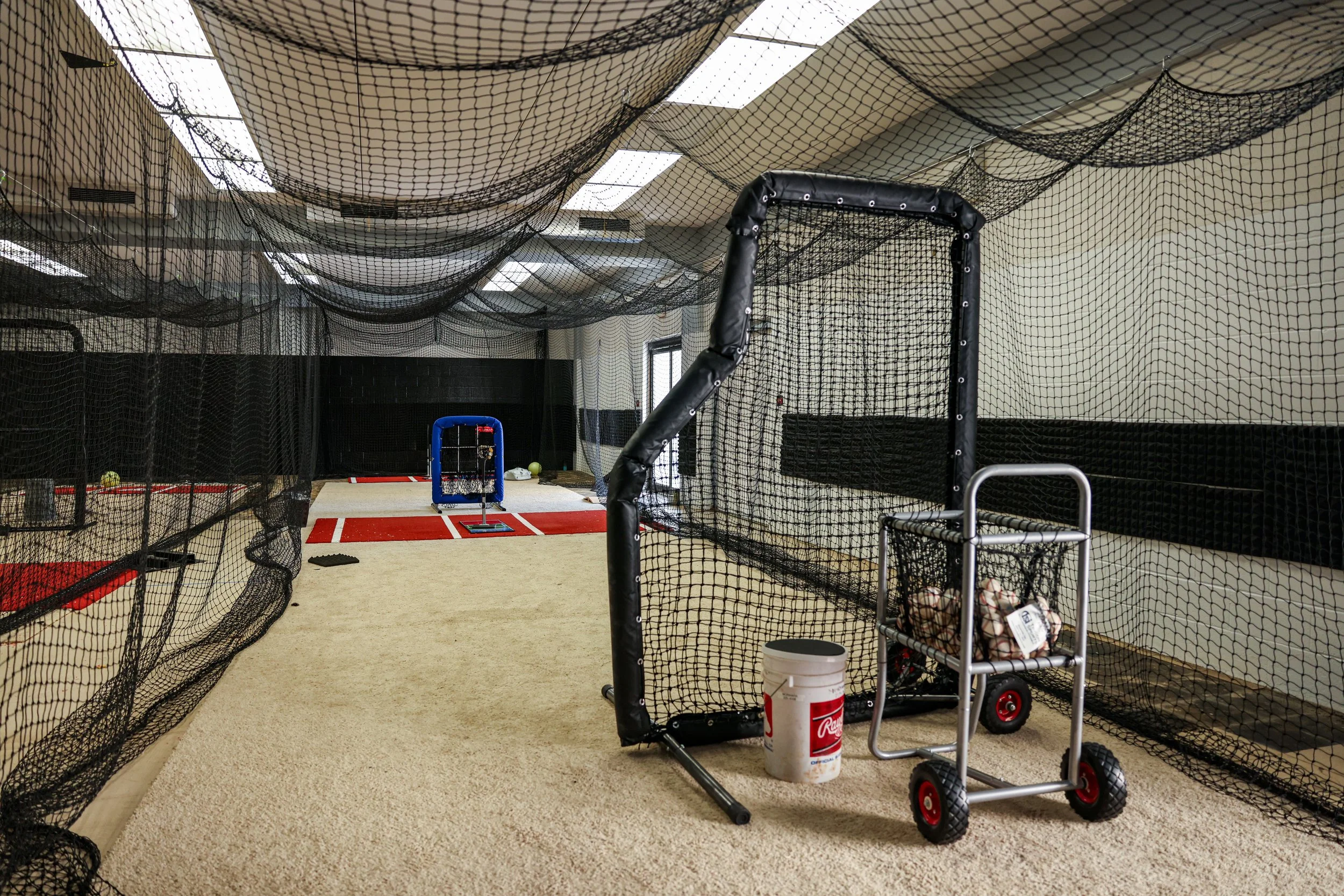 We have two lanes in the batting cage. New turf flooring. Hittrax equipment is also available for hitters to receive feedback on their batting.